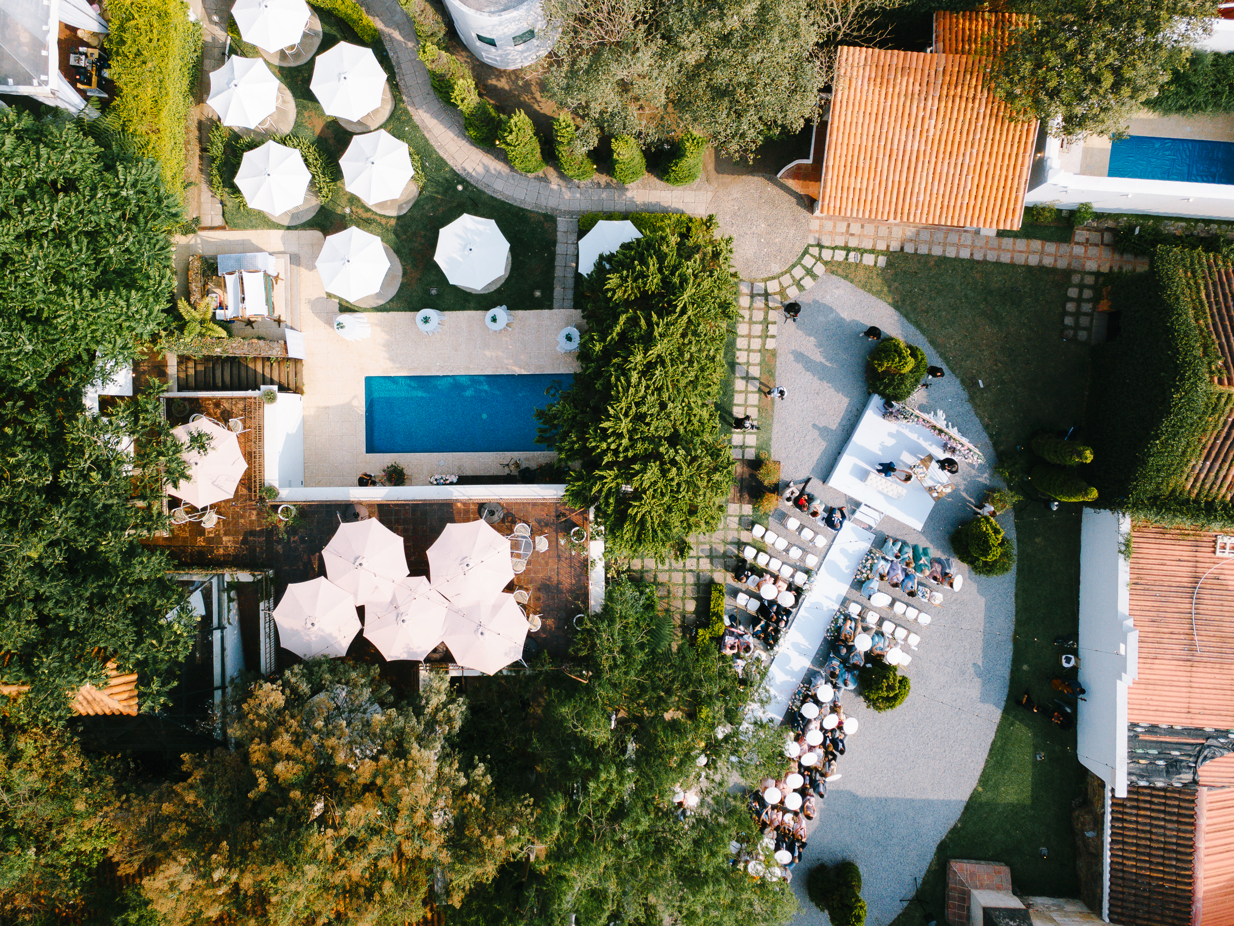 Imagina a tus invitados bailando bajo la silueta del Volcán de Agua, seguido por un impresionante banquete entre árboles tropicales y un cielo completamente estrellado.
